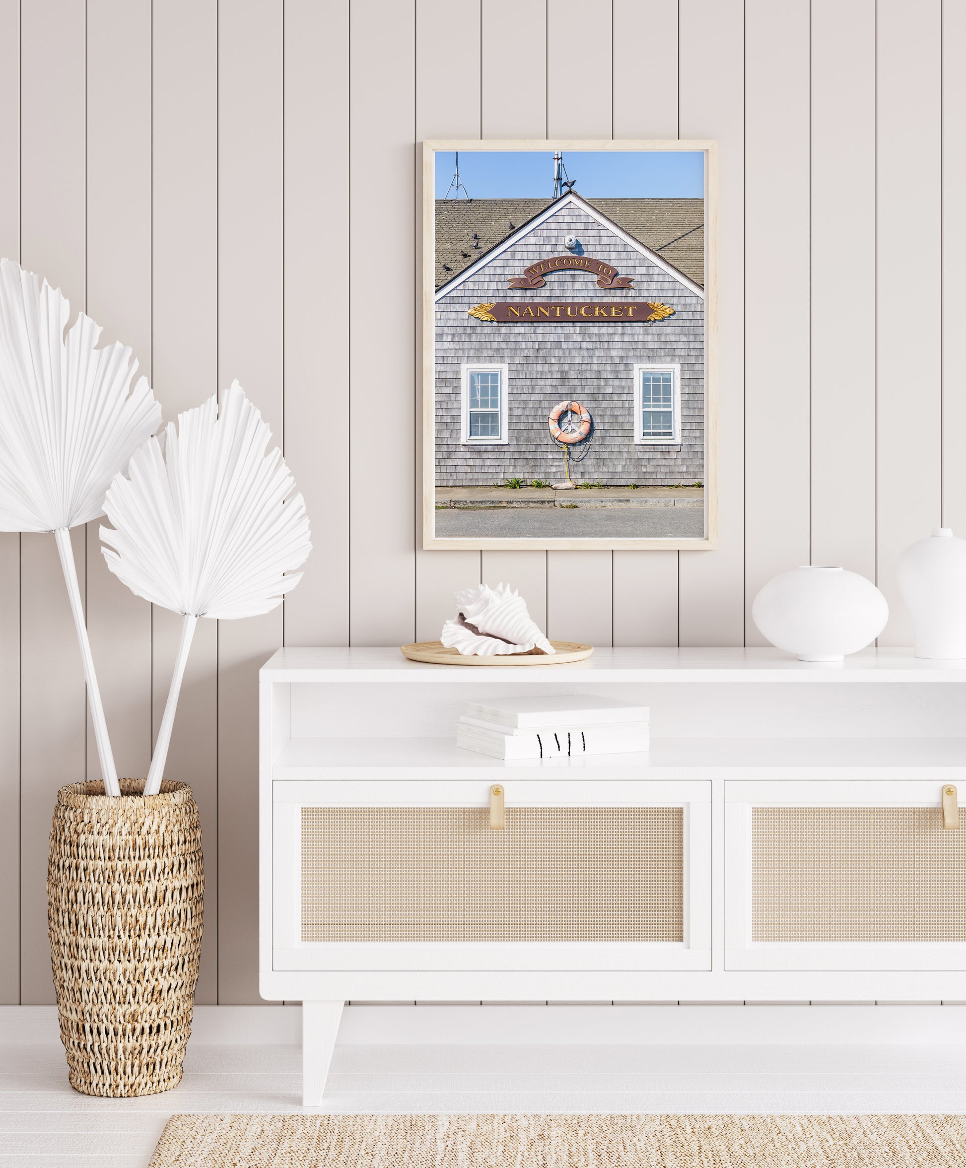 Perfect for beach house art or entryway wall decor, this coastal print blends beautifully with both modern coastal decor and more rustic New England interiors. Whether you're decorating a summer home or sourcing art for a hotel or Airbnb, the clean lines and soft tones of this piece make it a versatile fit.